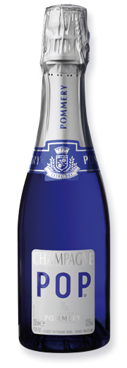 Counter display for Pommery mini champagne bottles. This cardboard display holds 6 mini champagne bottles on the top shelf with a storage area below for backstock.